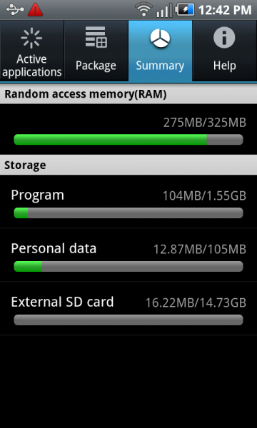 After our unboxing of the Samsung Fascinate, the big argument of the weekend seems to be whether or not it truly has 512MB of RAM or not and I can’t say that I have the clearest of answers for you. As you can see from the screenshots above, the device displays that it has around 336MB available for use. This Galaxy S comparison chart we posted from Verizon also confirms this. HOWEVER, and that’s a big however, there are some other, behind-the-scenes factors here which point to it actually having 512MB total.