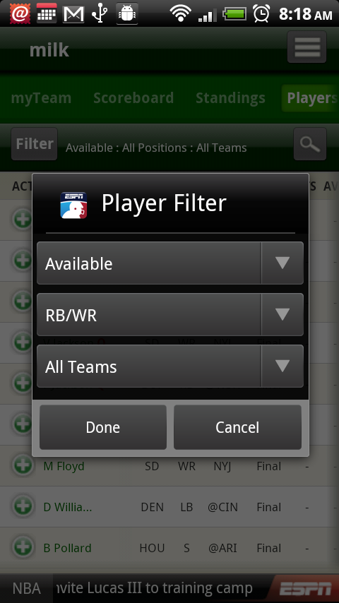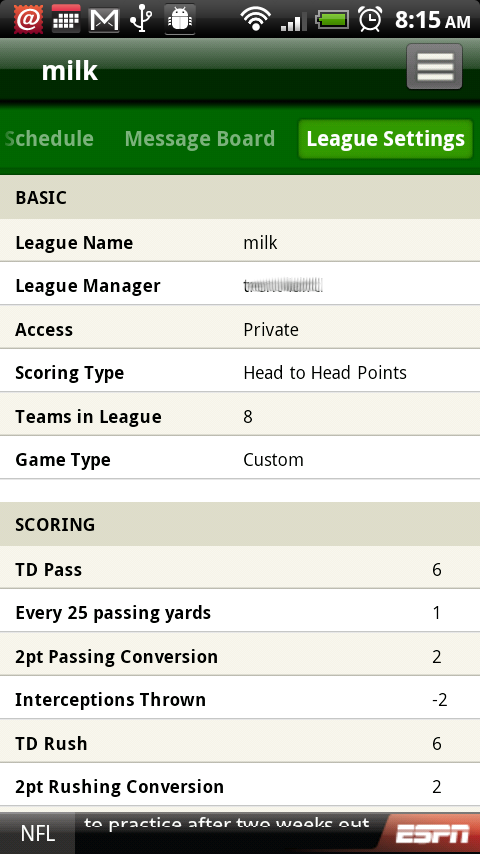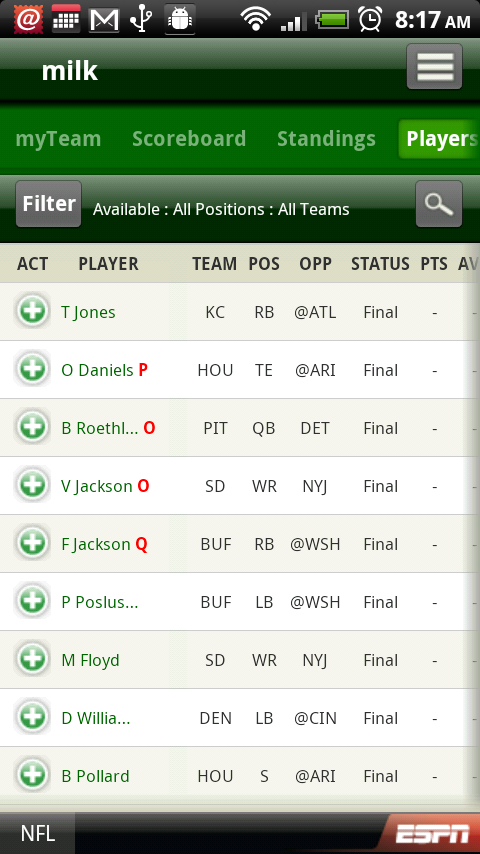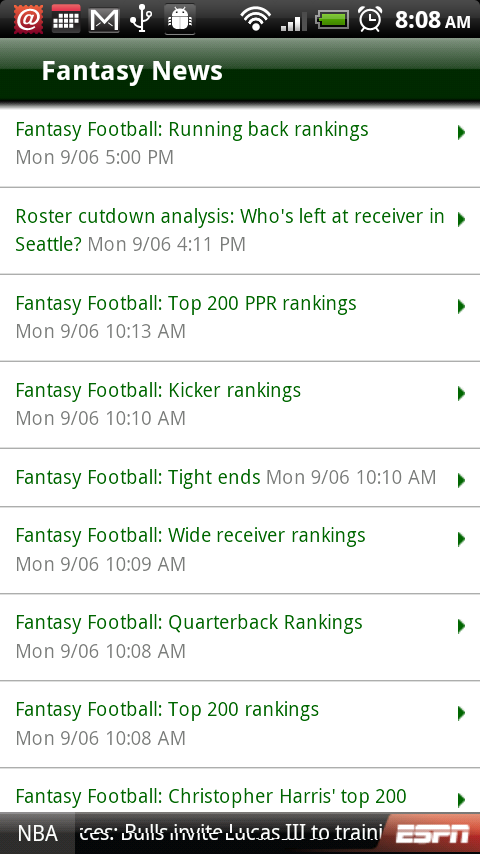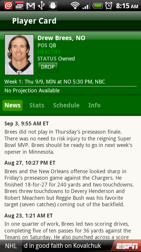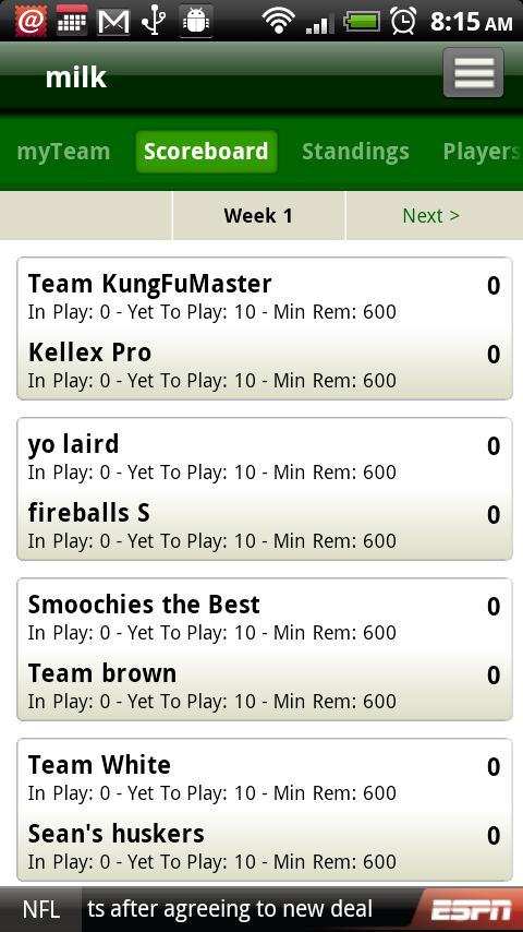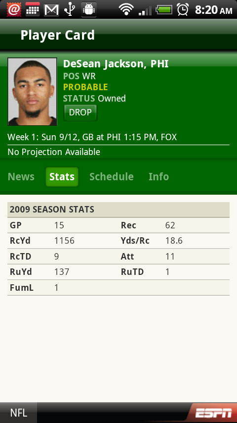 ESPN wasn’t about to be left in the fantasy football dust after Yahoo! dropped their FF app and a new player called HuddleHub sneaking into the picture any day now. On Saturday, the sports giant launched their own FF app, only this guy isn’t free. For $4.99, you can snag it in the market. Yeah $5 seems like a lot, but to fantasy football addicts, what’s another $5 right? This app does come packed full of features in case you were wondering. You cann add/drop players, check projections, see injury news, player cards, matchups, and so much more.
