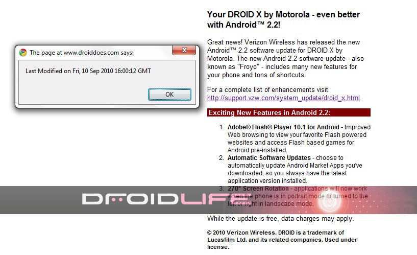A semi-hidden document was just sent to us from Verizon’s droiddoes.com site and shows the makings of a Droid X 2.2 update in the works. While no dates are given, this is the first time we’ve seen an Android 2.2 document/mention which even included a few Froyo details for the DX. It’s an odd page though, and simply references the support page that would normally feature updates including PDFs.