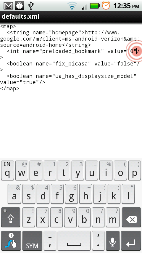 5. Long press on defaults.xml and choose “Open as Text Editor.”