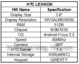 You are looking at a picture of the HTC Lexikon which could very well be the next “Droid” family member, meaning it’s headed to Verizon and packs a big enough punch to receive the coveted label. While the picture above looks slightly different than the photos we’ve seen of a new slider from HTC that is also possibly headed to VZW, the specs appear to matchup. An almost 4″ screen plus a slide out keyboard; is that an instant win for some people? It looks a lot like the Incredible, which in our books is a good thing.