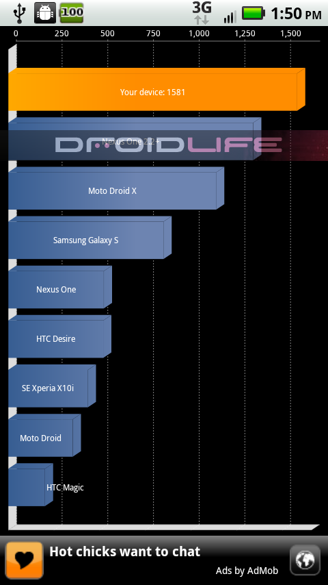 So you can see from the system info that this beast has been clocked at 1.2GHz which would make this D2 the fastest device on the market, right? It also is sporting what appears to be the same 512MB of RAM that both the DX and original D2 sport. And when an actual Quadrant benchmark was run, the first attempt came up with 1566 and the second hit 1709. Seriously, wow. To give you an idea of what the Droid X gets, check out this post. The Linpack score came in 16.499 which is about as high as you’ll see for whatever reason on an OMAP processor.
