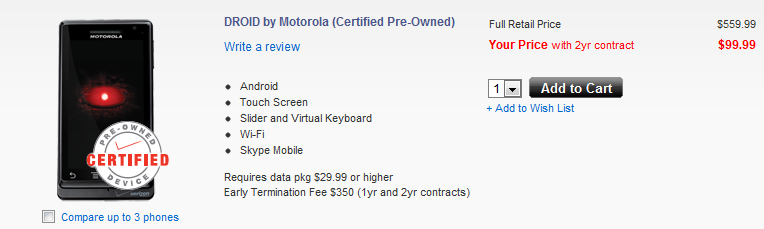 The original Droid family member just won’t go away! The device that was the inspiration behind Droid Life and one of the greatest communities in Android returns to Verizon’s website as a certified pre-owned device. The O.G. can be picked up for $99 on 2-year contract and should at the very least bring a smile to your face.
