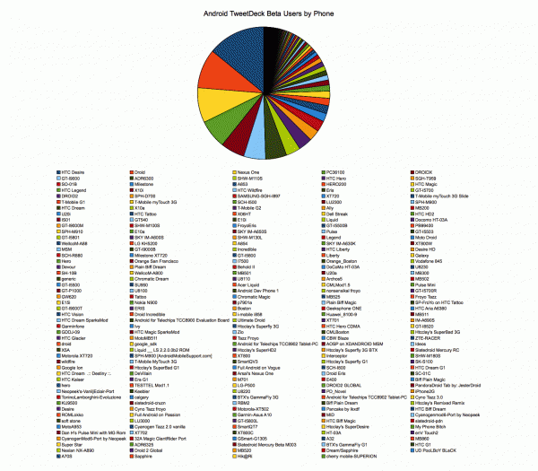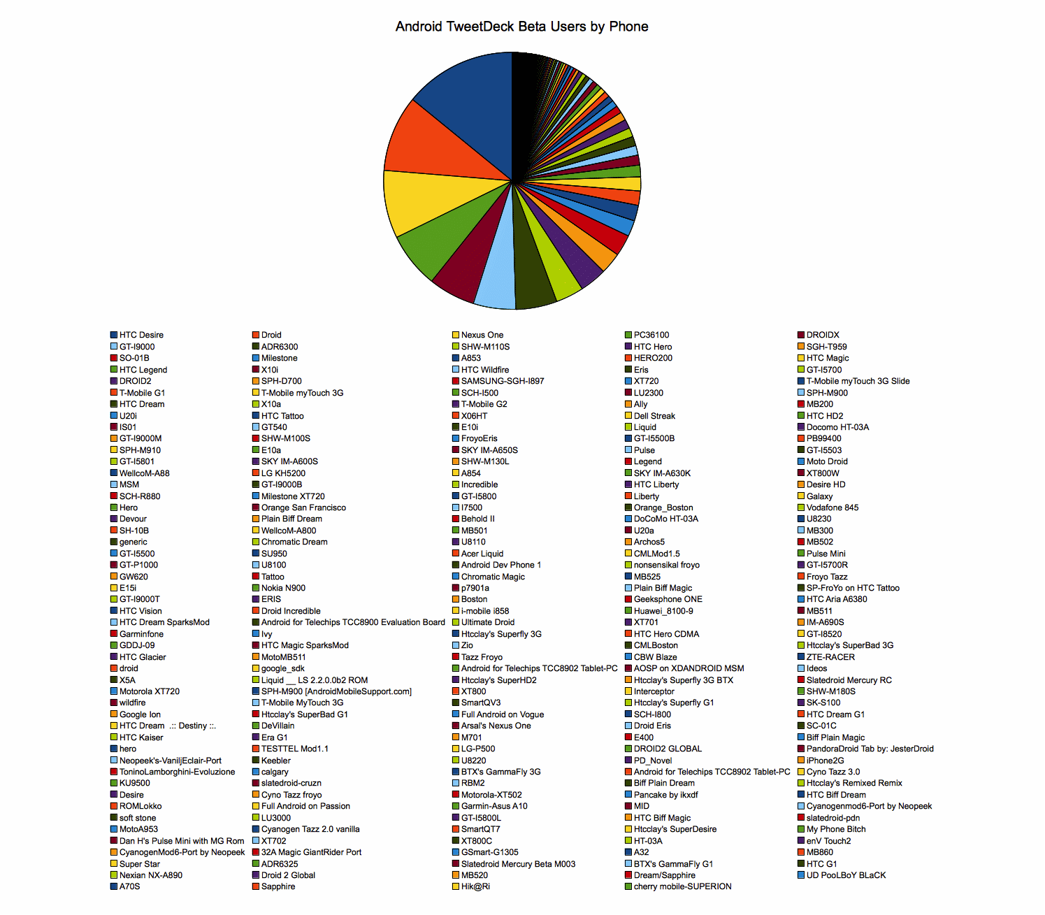 Tweetdeck released some pretty cool statistics last night that show which phone and what OS their 36,427 active beta testers are running. The list definitely screams “Fragmentation!” for Android, but we already know that’s an issue and instead found the batch of unreleased phones that made appearances to be more interesting. After just a quick glance, we found these 3 which really stood out: