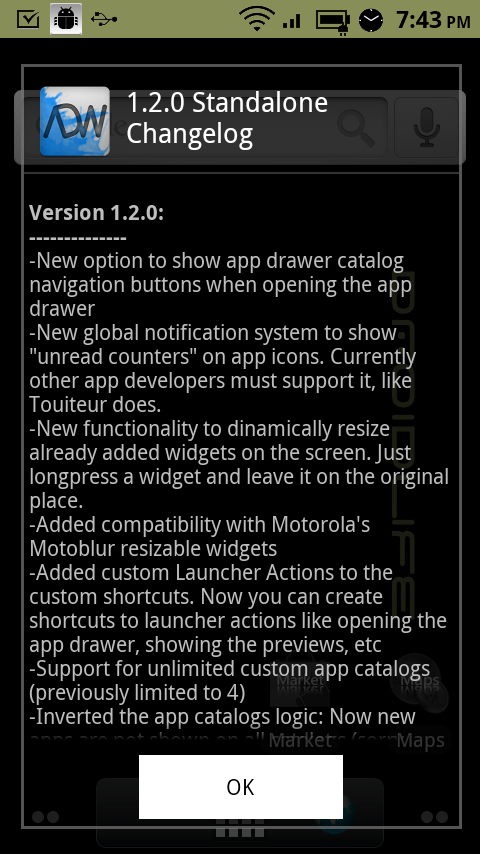 AnderWeb has also released an app to sit alongside this new ADW called ADWNotifier which allows your device to retrieve GMAIL, SMS and Missed Calls notifications. If that isn’t enough detail, check out this post.