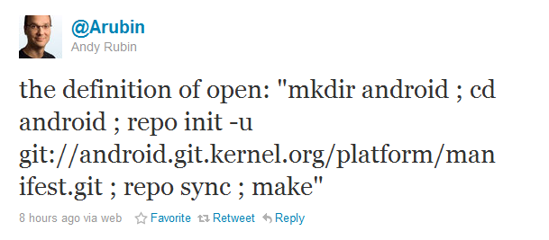 Are you speechless after listening to that? Don’t hold back the laughter for too long as the onslaught begins shortly after the call, lead by none other than Android master Andy Rubin, who tweeted this…