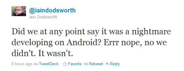 And to add to the awesomeness, Dodsworth went on to make it crystal clear that they only had 2 developers working on their Android product. Yep, 2 developers were able to pump out one of the most polished Twitter clients to date that works on every single Android version available. So much for fragmentation as an issue? (+3)