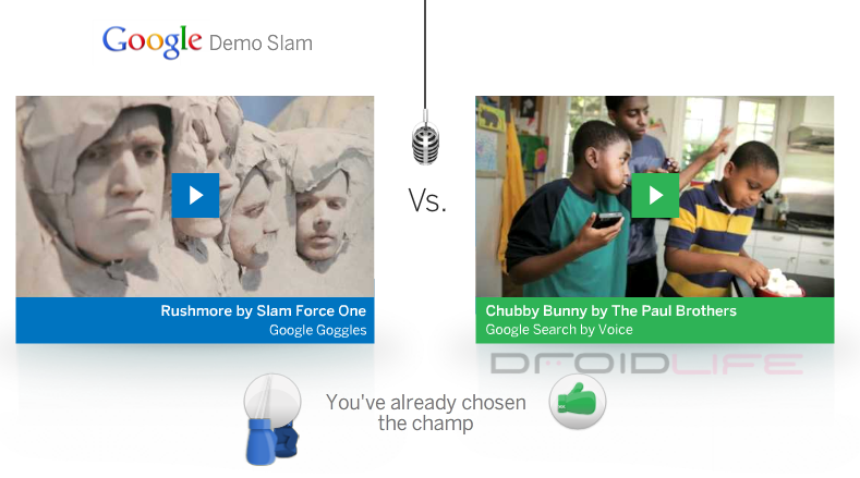 It’s Android related because they already have a couple ofvideos up featuring their Google suite of products for mobile devices, such as Voice Search. What’s even better is that they all seem to be using a Droid X to show off their “slam.”