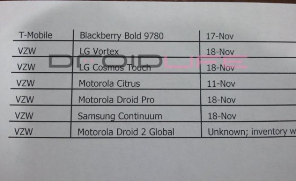 Oh, we should also point out that the Droid 2 Global is listed as “unknown” but we’re pretty sure it’s still on track for November 11th. Check out this comparison chart for the D2 Global to be in the know.