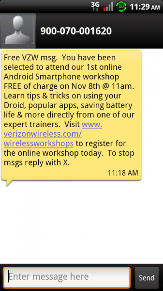 Verizon is inviting Droid owners to attend the first ever online “Android Smartphone workshop” on November 8th which just so happens to be the day of the Samsung event. Is it a coincidence? Probably, but we thought we’d at least throw it out there for the conspiracy theorists in the building. Topics that will surely be covered include: why you should root your phone to void your warranty, how to use Google Voice to avoid text message overages, and tricks to increase chances of a warranty upgrade replacement.