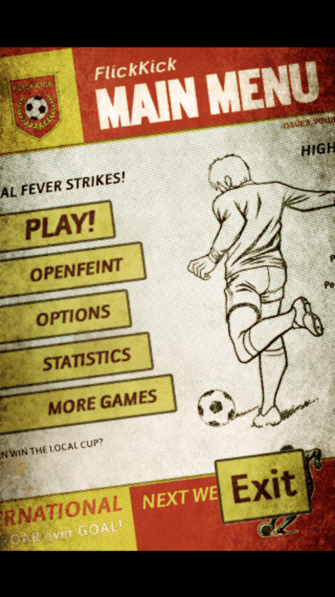 OpenFeint announced 11 new games this week and one of them I cannot get enough of. It’s called Flick Kick Football and has been dominating my life for at least 3 days now in more ways than one. The game is similar to Flick Kick Field Goal or Paper Toss, but for whatever reason is so much more fun and addicting. I probably should have started this off by clarifying that “football” in this game is referring to soccer and not the American pigskin ratings machine, but that shouldn’t turn you away though!