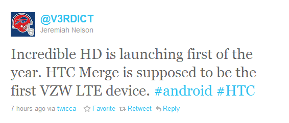 Twitter is turning into the ultimate information machine when it comes to upcoming Android devices and we’re loving it. Last week we had a conversation with an LTE engineer who revealed that the Incredible HD is real and will likely be an LTE device. Today, a new source (@V3RDICT) who appears to be some sort of a Verizon device rep, went through pretty major device training and tweeted about all of it.