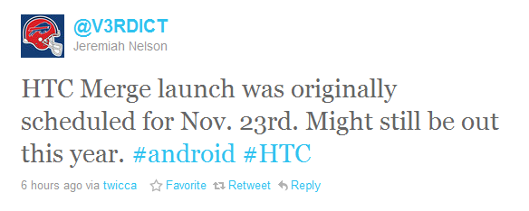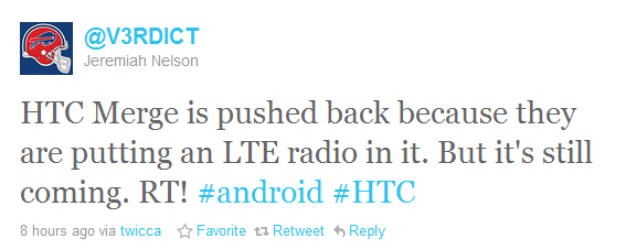 The first tweet had to do with the HTC Merge, suggesting that it has been delayed while HTC packs an LTE radio into it…