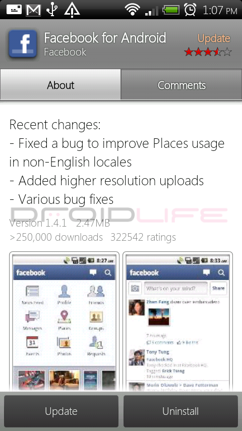 Another Facebook update is waiting for you in the market. Nothing incredibly ground breaking coming out of it, but you can now upload high resolution photos and run the app with fewer bugs. Definitely minor compared to last week’s additions.