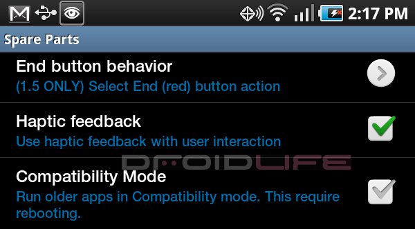 Bought a Samsung Galaxy Tab this week and are already frustrated that some of your favorite Android apps won’t display throughout the entire 7 inches of real estate? Don’t worry, there is a solution! It’s called Spare Parts and it’s a free app in the market. Normally used by the rooting crowd, Spare Parts opens up a set of Android settings that have been sort of tucked away for safe keeping.