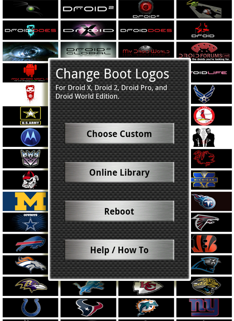 The guys over at My Droid World just released a new app that allows you to quickly change out the Motorola “M” boot logo that appears each time you restart your Droid X, Droid 2, Droid Pro or D2 Global (does not work on original Droid). Included in the app you’ll find over 130 images to choose from and they are adding more each day. Some of the categories of images are pictured above to give you an idea of what you have in store, but most importantly, there are Droid Life logos!