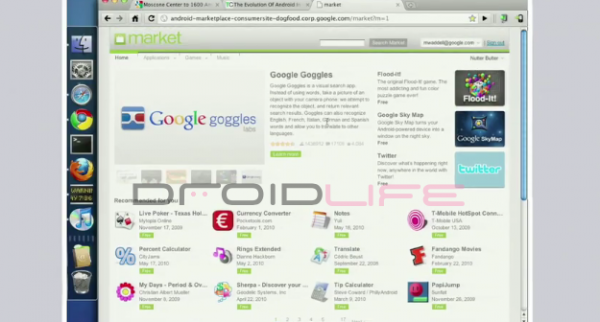 There are a lot of questions surrounding tomorrow night’s 6 hour market outage, but our buddies over at Phandroid have uncovered what looks to be the initial steps to everyone seeing a browser-based market that was first demoed back at Google I/O. We are expecting to see Gingebread at any day, and as some of you may remember, one of the new features said to be included with this Android version was indeed a pretty-new market that would run in a browser.