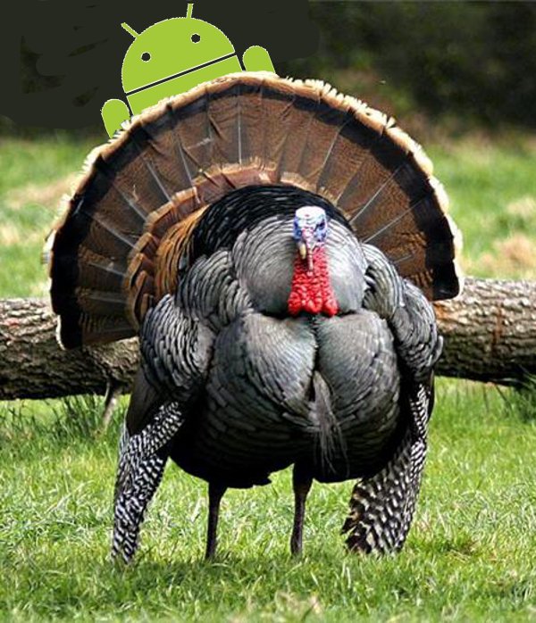 I have no idea why that Android is hiding behind a giant turkey, but that’s beside the point. It’s Thanksgiving everyone! I hope you all have family to relax with, food to stuff with, and NFL to get physical with as you gorge on massive amounts of yummies. Today marks a day of mourning for your favorite belt and jeans that will no longer be wearable after you crush that 3rd turkey sandwich. Have a great time everyone!