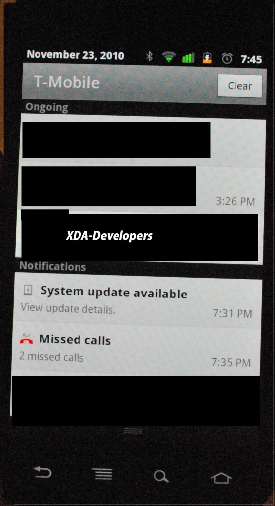 The Nexus S finally broke cover and made an appearance in the wild running the next version of Android aka Gingerbread. While this is another tipster with zero camera skills, at least some stuff is confirmed like the new grey/black notification bar and green highlights. Other than that, we can see that the device is indeed a Samsung, will be stuck on T-Mobile (seriously?) and has a newly squared off launcher that differs from the rounded version seen on Froyo. And these pictures were taken just 2 days ago, so this puts us another step closer to launch.
