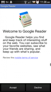 Go ahead and uninstall Pulse, Greed or any other RSS reader app you had installed on your phone as Google finally released their Reader which mimics the browser version perfectly. OK, telling you to uninstall those other apps isn’t really fair, but after glancing at Google’s attempt for 5 minutes I can tell that this will immediately become my default. It’s free, simple and has the backing of Google which means it should actually work correctly.