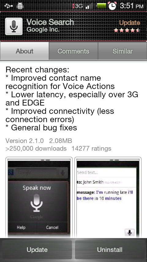 Update: Voice Search update also just hit the market. They improved connection errors and contact name recognition. (Cheers Octo!)