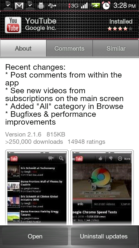 Both Youtube and Google Voice saw updates today and are available in the market right now. Neither are huge, but the Youtube app did enable commenting, subscription viewing from the main page plus some other performance tweaks. The Google Voice update was just a bug fixer according to the description.