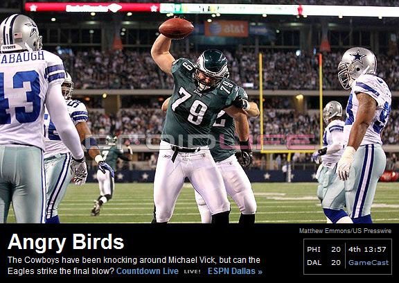 One of the headline writers over at ESPN is most definitely an Angry Birds fan. The headline above was captured during Sunday Night Football just before my boy, DeSean Jackson ripped off a 91-yarder and helped propel the Eagles to another win. The point though, is obviously how big this silly game of sling-shotting birds has become. Not only did this headline appear, but the announcers during yesterday’s Blazers/Spurs game also made mention of it. It really has taken over the entire world.