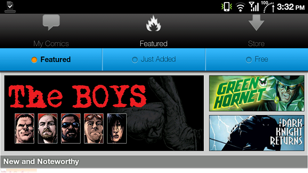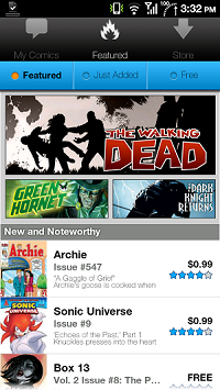 While Android has had a fairly nice comic viewer on the market for awhile in Droid Comic Viewer, a problem arises in the fact that it’s used for viewing .cbr and .cbz files. These formats (Comic Book Rar and Comic Book Zip, respectively) are fan-created, and usually used for possibly-pirated scans. In short, there’s no way for big publishers like Marvel and DC to release their titles in this format without opening themselves up to the possibility of piracy.