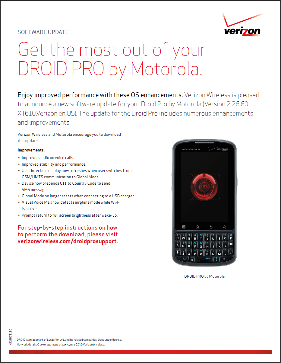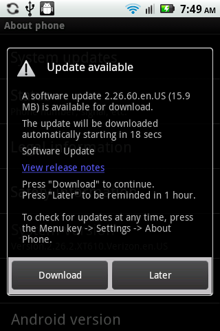 The Droid Pro (our review) is the latest family member to receive an update. With so many devices out now, seems like one pops up each week, and of course, we’re not complaining. This one appears to be pretty minor, weighs in at about 15.9MB and looks to improve a bunch of stuff. If you’d like to tell your phone to pull the update immediately, head to Settings>About Phone>System Updates on your device and it should be waiting for you.