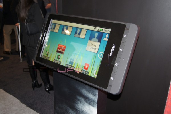 We just got done doing a quick booth tour with Motorola and noticed the device pictured above, a giant Droid X. And guess what? It’s full functional. Our very own Tim-o-tato went hands-on to show you what it’s like to play on something the size of most people’s TVs. The screen worked, most apps worked, the physical buttons actually worked, it can make calls….yeah it’s awesome.