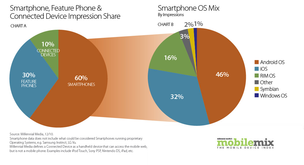 I guess it’s a good thing Apple decided to finally jump on board with Verizon if they want to try and compete with the juggernaut now known as Android. In Millenial Media’s new Mobile Mix report, our favorite mobile OS took over the top smartphone spot on their network for ad impressions. An 8% increase month-over-month helped propel Android to the forefront, giving it a 46% share while iOS dropped back to 32%. The two battled it out to a tie over the last couple of months, but a strong holiday push must have made the difference and we’re wondering now if Andy will ever look back? A 14% gap is pretty significant if you ask me.