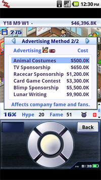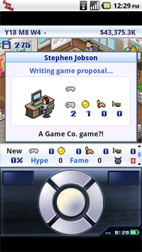 I have a number of games on my Milestone, but I don’t use it as a serious gaming device. It’s nice to have something in the case of a long commute or a quiet moment between classes, though. I’ve taken advantage of Angry Birds and it’s free license, and engage my puzzle-craving side with Frozen Bubble. However, a recent Android release, Game Dev Story, has achieved something that those other games never have: it has made me contemplate uninstalling it based on how addicting it is.