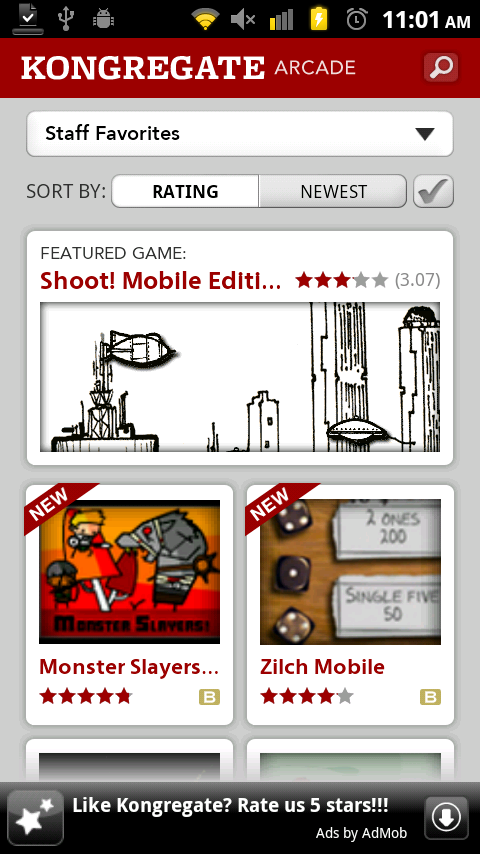 Kongregate announced today that their Android application with its 300+ Flash-based games are ready for prime time and can be grabbed from the market immediately. I know what you’re thinking, “Finally! Let’s take advantage of this Flash goodness that can only be found on Android!” And I agree, it’s about time that we get to use Flash for something other than just watching embedded YouTube videos. This is good stuff.