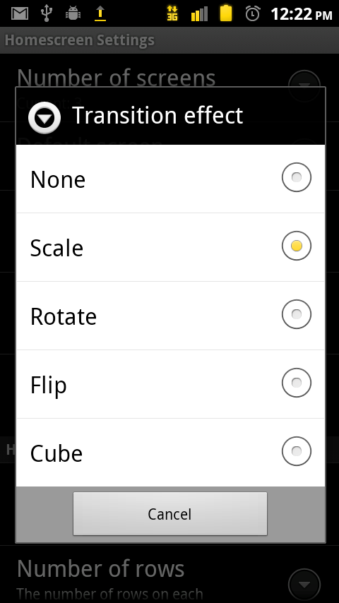 Update 1: To access these new screen transitions head to Menu>Preferences>Homescreen Settings.