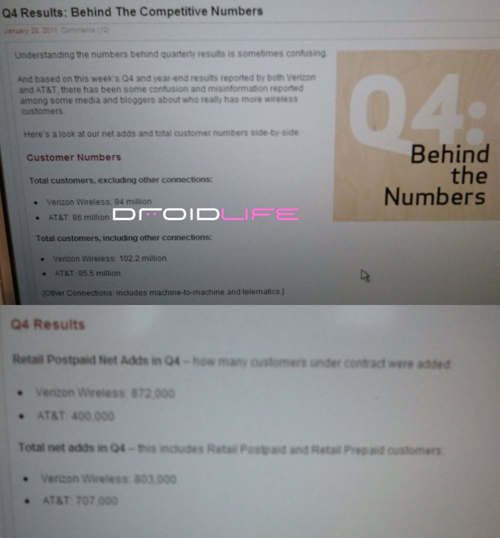There were a lot of reports coming out across the interwebs this week (a story we avoided) suggesting that AT&T had somehow eclipsed Verizon as the number 1 carrier in the U.S. and Big Red is not about to let anyone think they aren’t ruling the air (see what I did there?). According to the info we’ve just received, it appears as if earlier reports were comparing the wrong sets of numbers. If we look at the shots above, you can see that Verizon has 102.2 million customers (including all connections) which is almost 7 million ahead of AT&T at 95.5 million. They also want to make sure everyone sees their postpaid net adds for Q4 at 872,000 which is more than double AT&T’s.