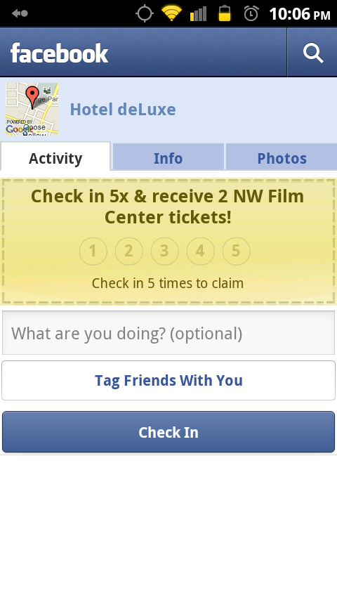 An update for the Android Facebook app hit late last night and for some reason seems to be confusing everyone. The update included “Deals” which is really just an addition to the “Places” tab that we were introduced to a couple of months back. In order to see what deals are near you, you open up the Places tab, tap on “Check In” and start browsing locations in your area. As you cruise through listings, ifyou notice a little yellow notepad looking icon then that means there is a deal there.