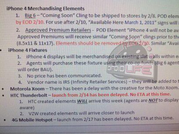 Uh oh. Has the HTC Thunderbolt been delayed? According to this news we just received from some friends of ours, it has. The really troubling part is the “No ETA at this time” note, but we’re hoping it won’t be delayed for long especially with all of the marketing materials for the device arriving on time. I guess now we know why VZW sent out this interesting little tweet yesterday morning.