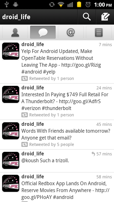 The new Twitter 2.0 is available in the market if anyone is interested. It’s the exact same version we saw previewed this morning, meaning nothing will surprise you, but that shouldn’t stop you from giving it a good run-through. Speed and UI enhancements were raved about earlier and that’s definitely the case here. This new version is fast, is much easier to navigate around, and should be an option for those of you currently using something like Seesmic.