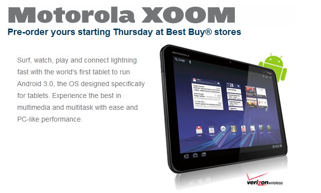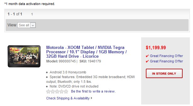The Motorola XOOM site has gone live at BestBuy.com/Xoom and the world has officially come to an end, or at least that’s what my inbox is telling me. The device is showing a price of $1199 and as far as I know, it’s not a mistake, at least for now. Our sources at BBY have been telling us this number for a week now, but we’ve avoided it as the price likely won’t be anywhere near its 24th launch date.