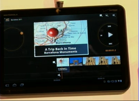 Eric Schmidt is on stage at MWC right now and just walked through a demo of a new app built specifically for Honeycomb and tablets called Movie Studio. The app allows you to edit an entire movie just as you would on a PC in an above-average editing program. You can add transitions, move around slides, include a music track, export it in a variety of formats and of course, share it with friends.