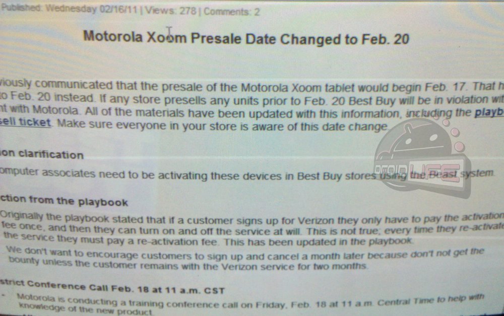 Update: We’ve just received confirmation from Best Buy that the XOOM pre-sale has been pushed to the 20th. You should also know that you won’t be able to re-activate the data package on this device whenever you like at no cost. An activation charge will be enforced each time you re-activate.