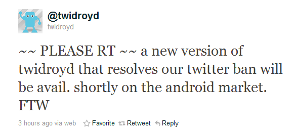 Update: The folks at UberMedia are doing their best to fix this situation. The twidroyd account has tweeting the following message to inform users that they will be back up in no time. But if you want something new anyway, then check out this poll we’re running to decide which is the most popular Twitter app on Android.