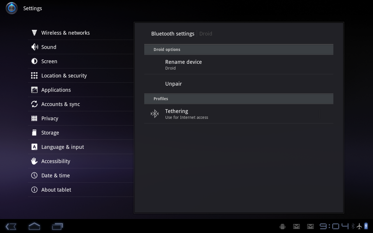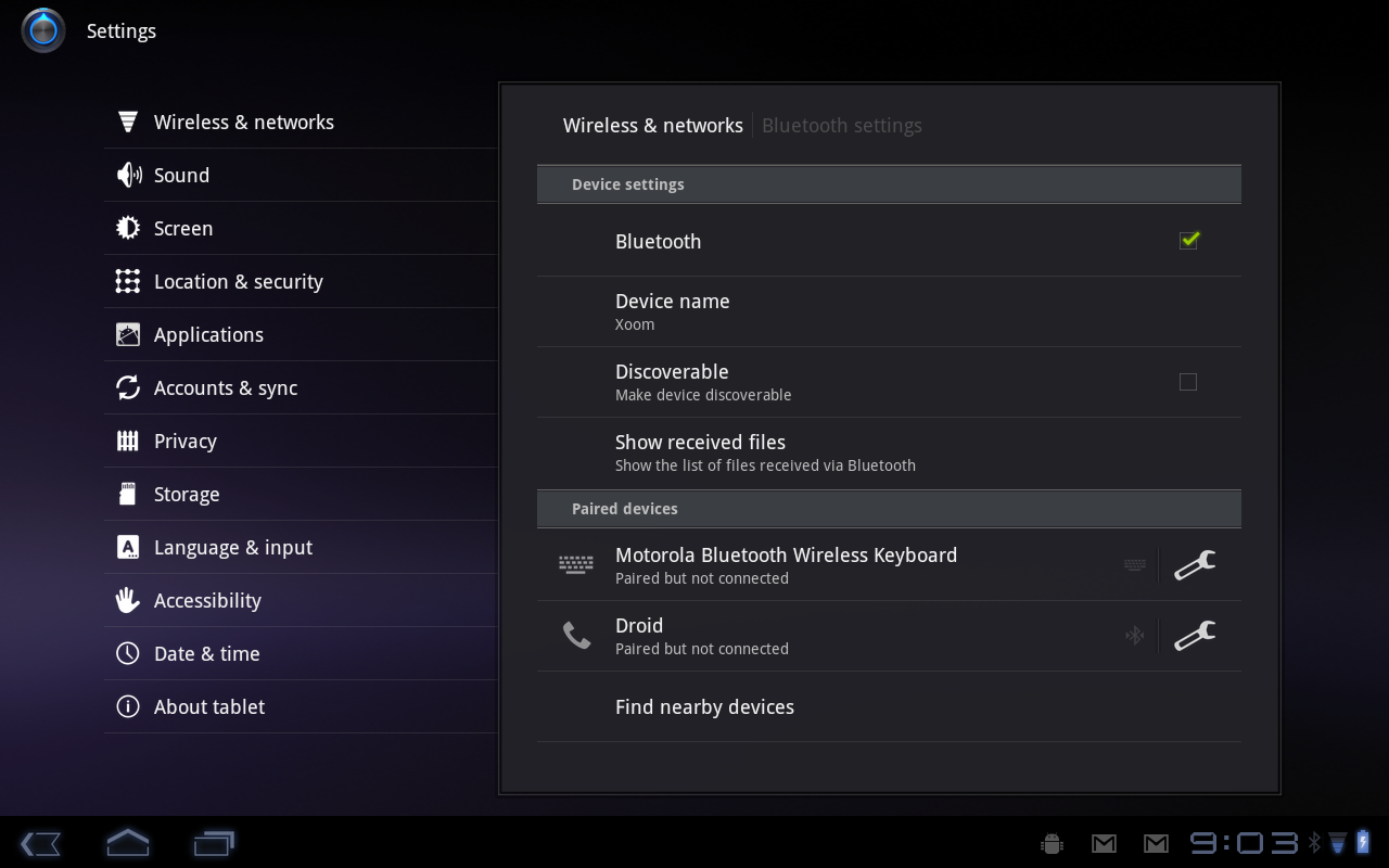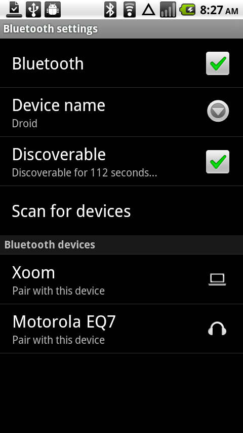 6. Head into the Bluetooth settings on both your DROID and XOOM and turn it on.