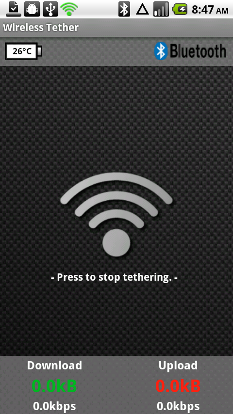 3. Open Wireless Tether and switch it to use Bluetooth.