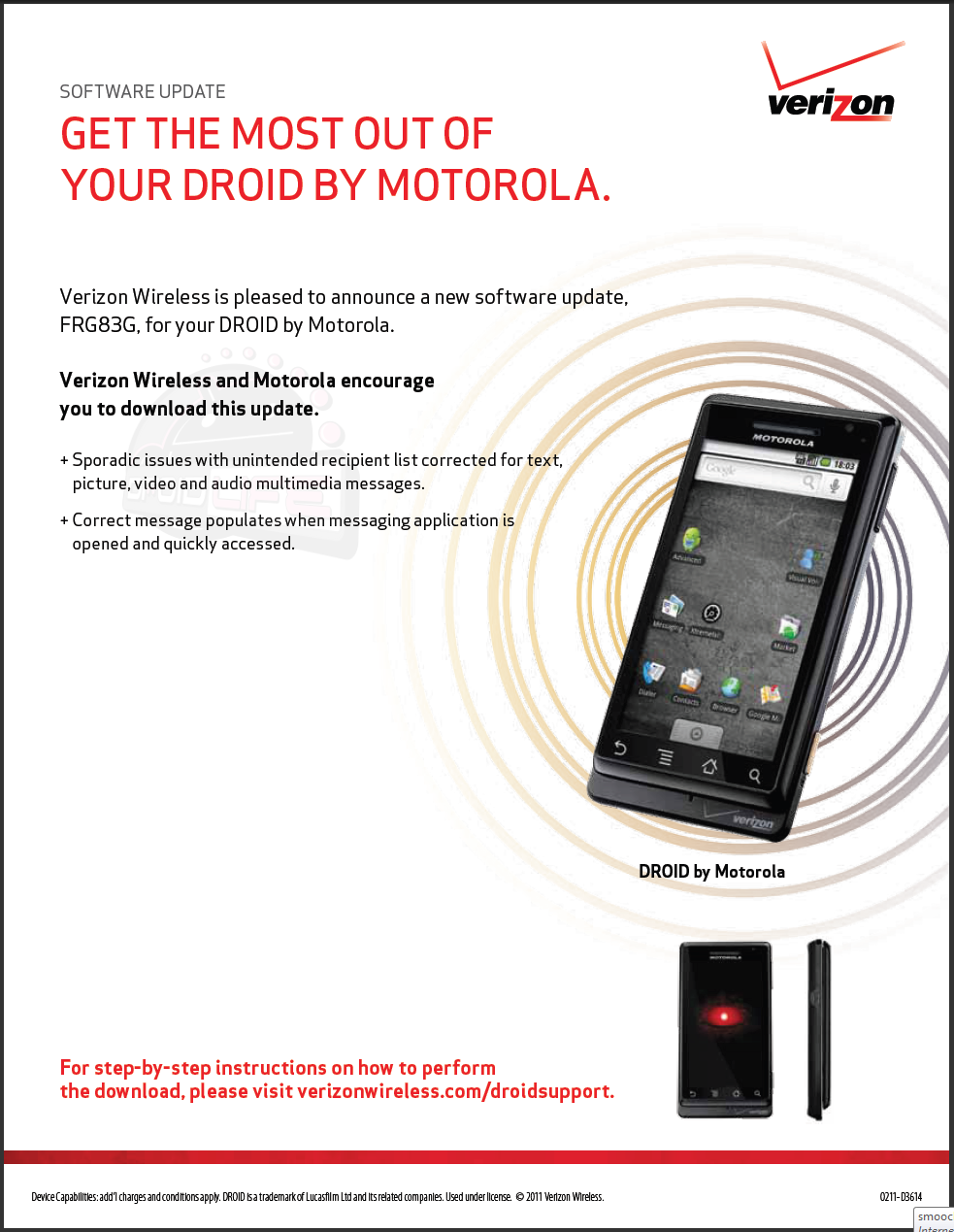 Nope, it’s not Gingerbread. If you want to get anywhere close to Android 2.3 on your original DROID, then check out this or this. For those of you still running stock software though, an update will start rolling out today that will bring you up to FRG83G and to Android 2.2.2. This is the 3.4MB update that Motorola was testing back in January and now looks to be ready.