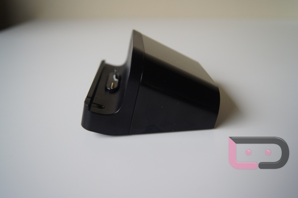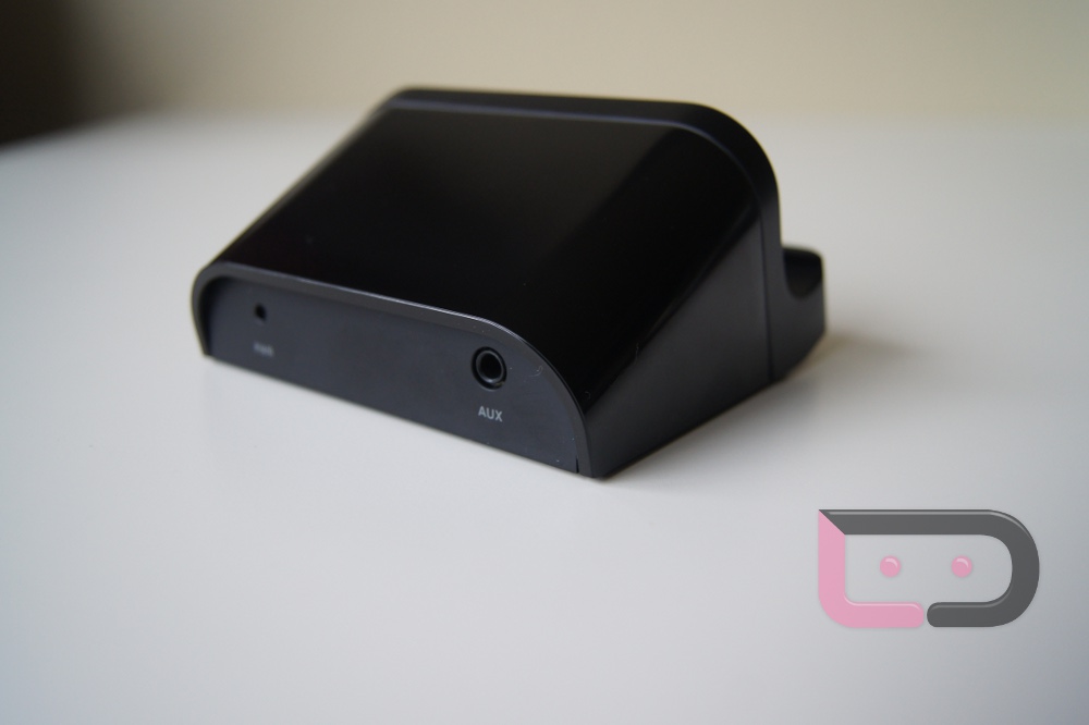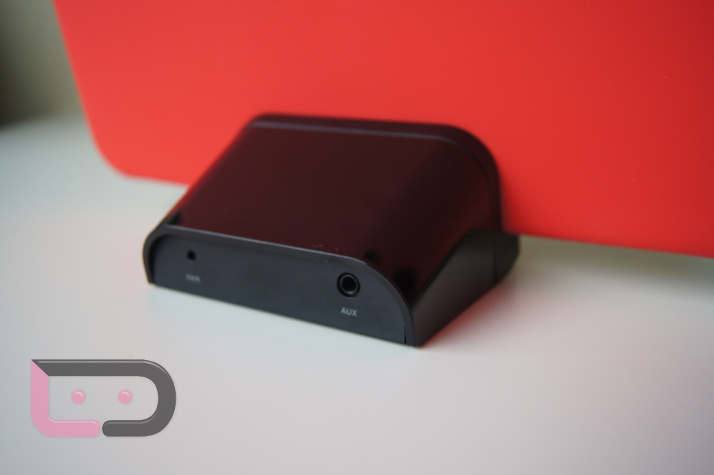 So this standard dock comes in at $49.99 which at first doesn’t seem too expensive, but then it shows up and you start wondering exactly what you just paid for. On the back, you get a charging port and an AUX output so that you can hook your XOOM up to your stereo/set of speakers. No HDMI-out with this little guy though. You also can’t get to the HDMI port on your device because it’s covered up while docked.
