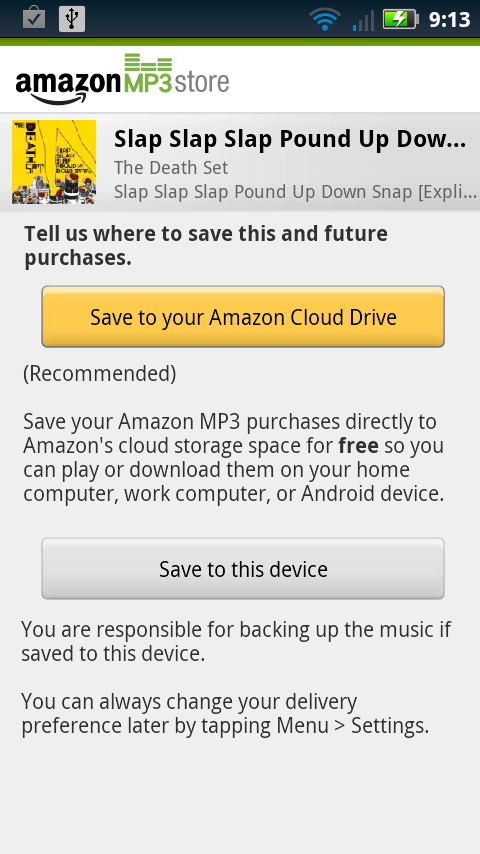 If you decide to shop, you can decide after purchasing if you want to save your songs to the cloud drive or directly onto your device.