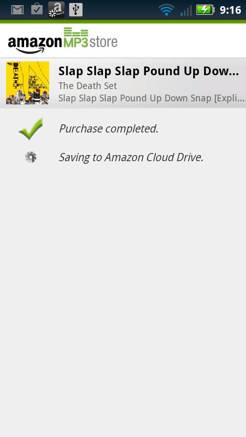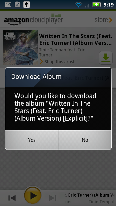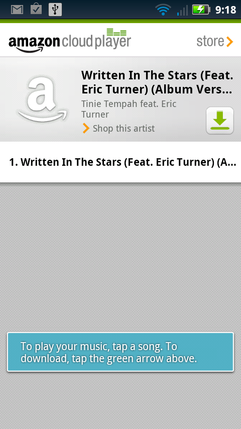 Here is what the cloud music player looks like after saving your purchases to your cloud drive. Oh, and it also includes a button to allow you to download to the device you are currently using. Yessir.