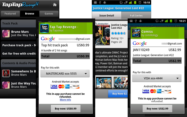 Several other apps are now taking advantage of in-app billing as well: Comics by ComiXology, Gun Bros, Deer Hunter Challenge HD, WSOP3, and Dungeon Defenders: FW Deluxe.