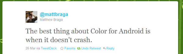I would fully expect Color to try to take advantage of that “beta” status to save face, saying that its obvious lack of quality control or testing was all “part of the plan”. After all, it was the glorious users who alerted them to the problems, so the beta must have done its job. It’s a pity that what was once a term that had a valid point in a development cycle of an app is now being used as a licence to ship something completely nonfunctional.